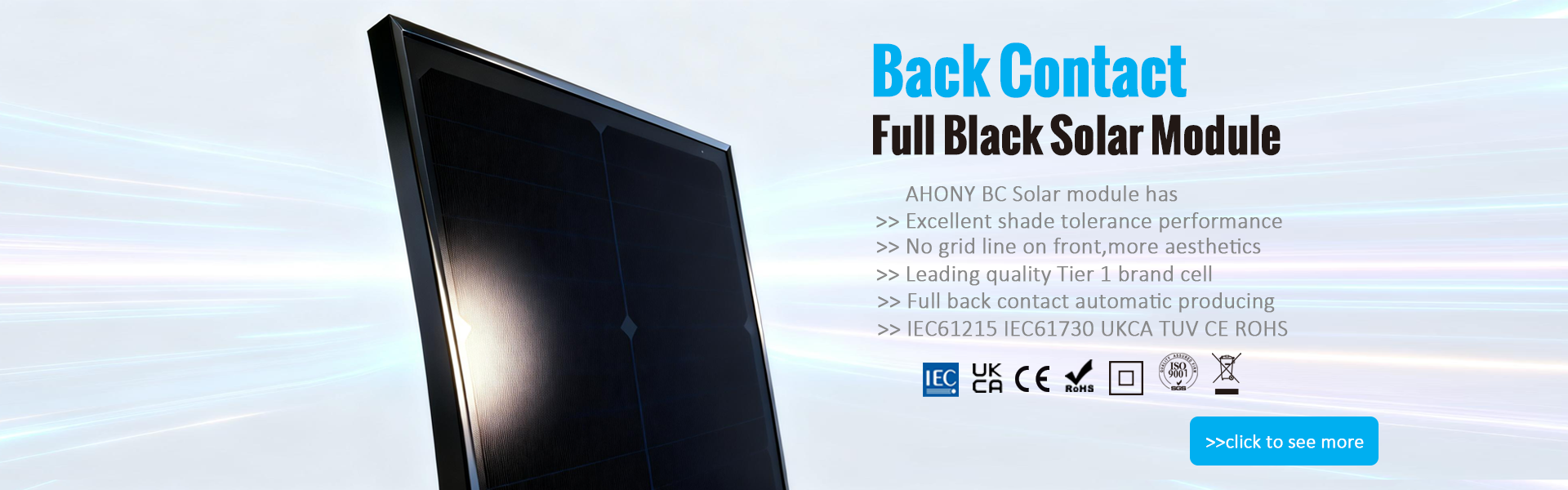 AHONY produces Flexible solar panel,glass solar panel,semi rigid solar panel,USB solar charger,folding solar kits for personal use,home garden,outdoor,balcony,mobile,marine CCTV,smart system,IOT etc.Our products pass TUV IEC61215 IEC61730 CB UKCA CE ROHS SGS VOC certification,with more than 13 years experience in high quality ETFE laminated solar panels,we use automatically laser cutting,soldering,stringing machine,by using leading quality raw material and highest efficiency solar cells,AHONY is dedicated to producing world class products. We value a lot about customer,environment,as well as nature,AHONY is short for "all honors of nature",we want to bring all benefits to people all around the world.Every clean energy solar product helps improving our planet,our neibourhood,our life,our future!